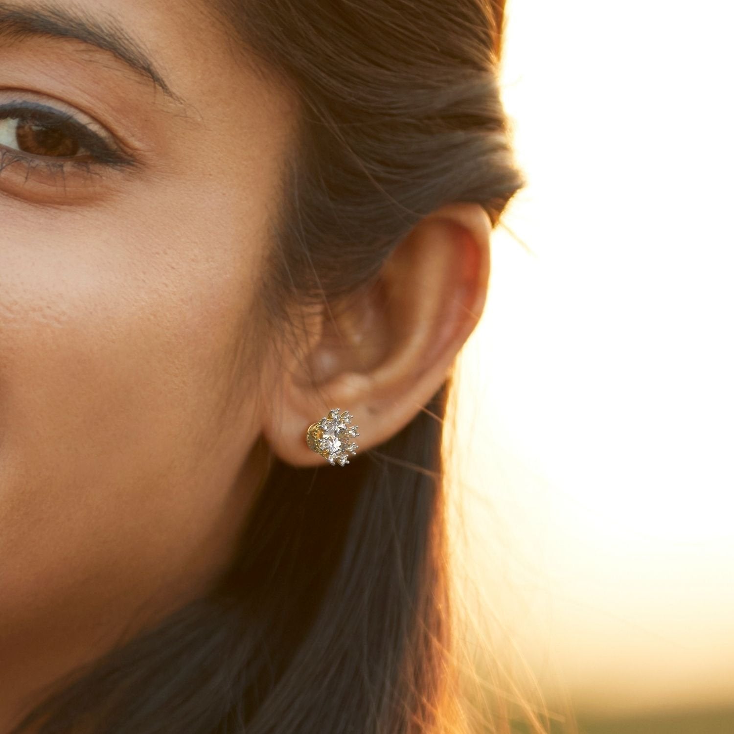 • STONE – Super Shiny 8 MM or 2.00 Carat Each Along With 0.50 Carat Small 5A Grade GlitzC American Diamond is These 2 Carat Solitaire Sunflower Stud Earring.